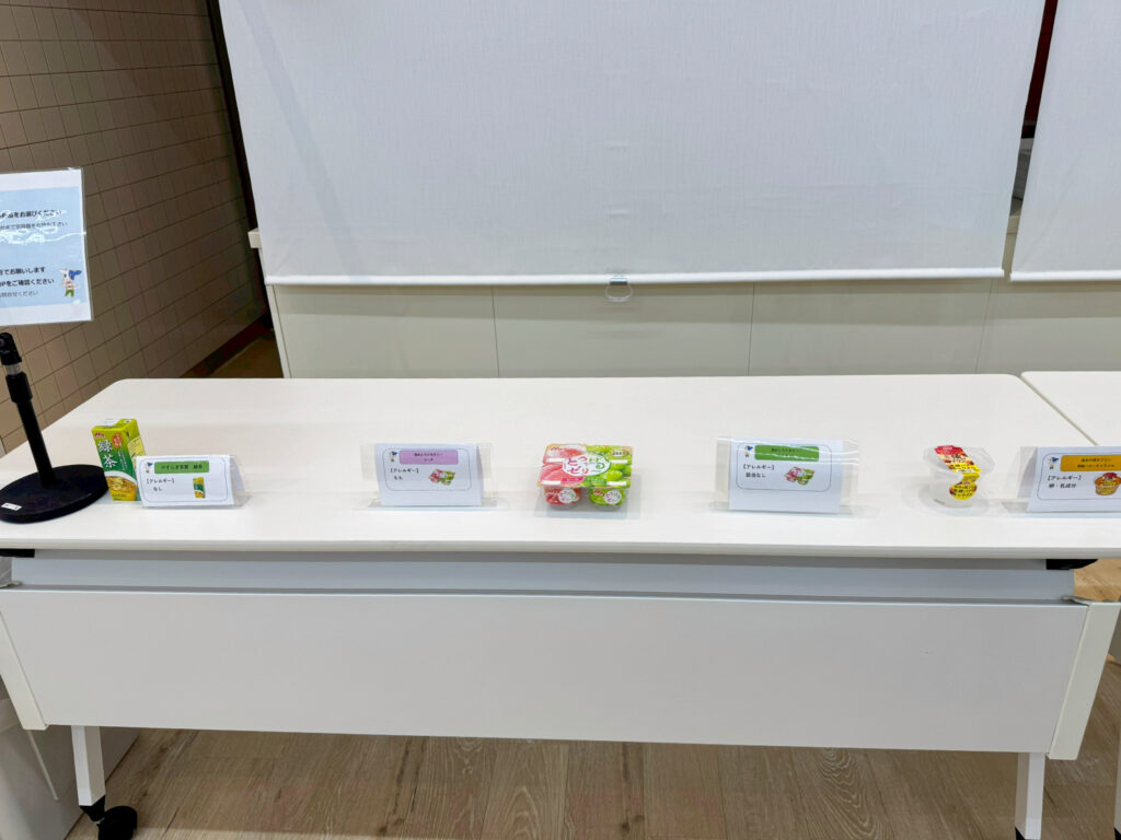 まずは受付をして、お土産を人数分受けとります。食品アレルギーの有無についてはここで聞き取りがあります。