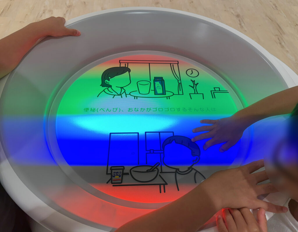 普段身の回りにある乳製品をくじ引きのように取り出せるしかけがあったりと、遊びながら学べる展示がたくさん♪