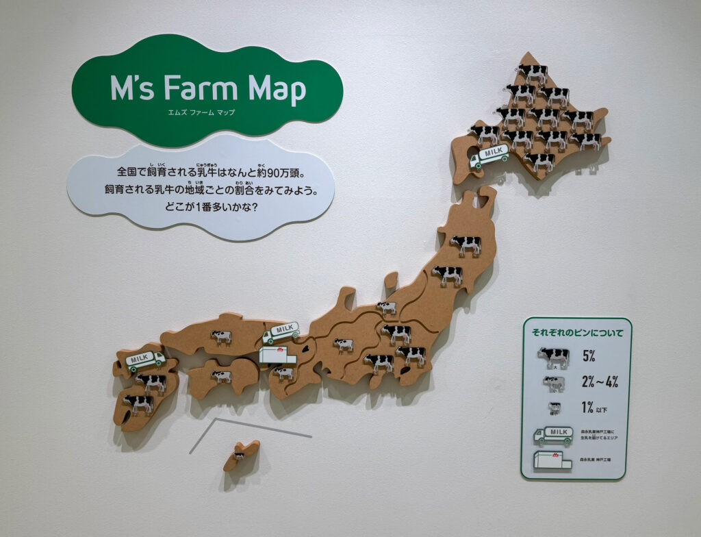 遊びだけでなく、乳牛が日本のどこで飼育されているのかわかりやすい展示で学ぶことができますよ。牛乳・乳製品といえばやはり”北海道!“ですね。